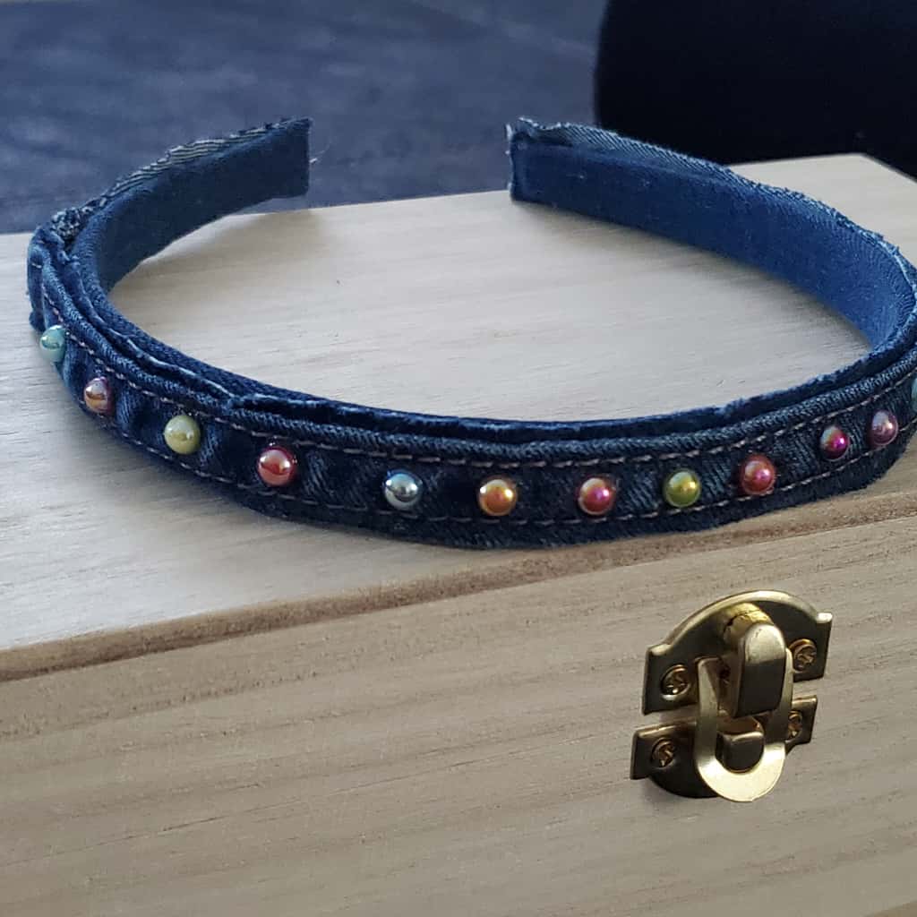 Diadema cintillo mezclilla y perlas de colores