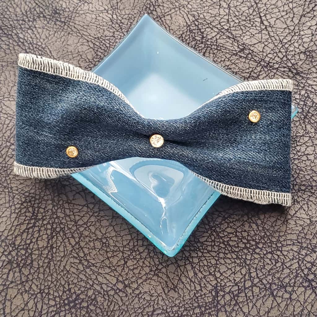 lazos en tela de mezclilla y piedras en gancho prensado hecho a mano